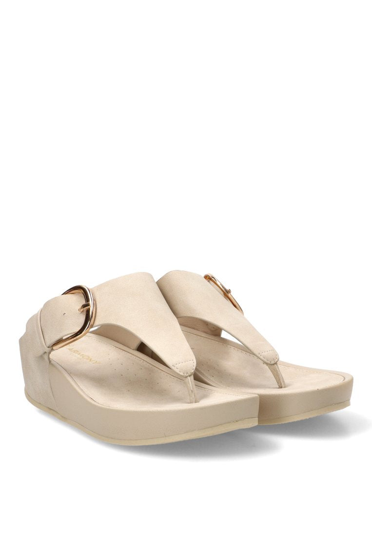 La SEASIDE 01 10088 destaca por su enfoque en la funcionalidad de alta gama. El diseño de ARMONY presenta una estructura de dedo clásica que enmarca el pie con delicadeza, aportando una ventilación óptima para los días más calurosos. El sistema de cierre mediante hebilla ajustable de ARMONY garantiza una sujeción firme al tobillo, permitiendo una adaptación ergonómica personalizada que evita cualquier desplazamiento al caminar. El color hielo, seleccionado estratégicamente por ARMONY por su capacidad para resaltar el bronceado y aportar una sensación de limpieza visual, convierte a esta sandalia en el neutro más sofisticado de tu colección.